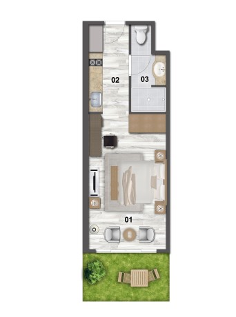 Perfectly designed for singles or couples, Mareya’s studio residences offer efficient layouts with modern finishes and stunning coastal views.